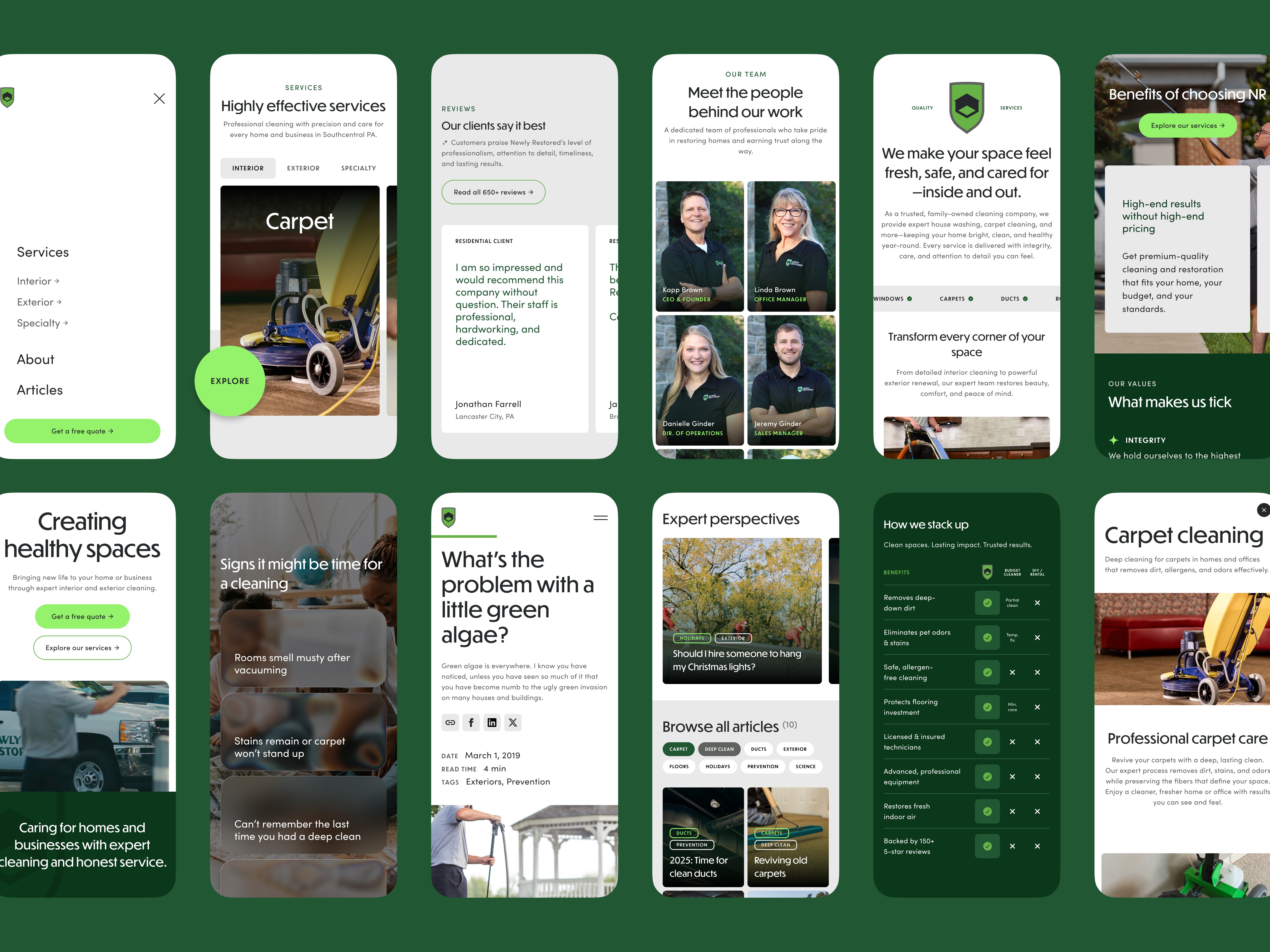 A key part of that work has been designing and evolving Newly Restored’s digital presence to better serve both the brand and its customers. As the company grew, the website had accumulated fragmented content and competing goals, making it difficult for users to understand the full scope of services or know what steps to take next. I led a comprehensive audit and rethinking of the experience, focusing on simplifying the user journey, organizing services in a more intuitive way, and aligning the visual language more closely with Newly Restored’s established identity.